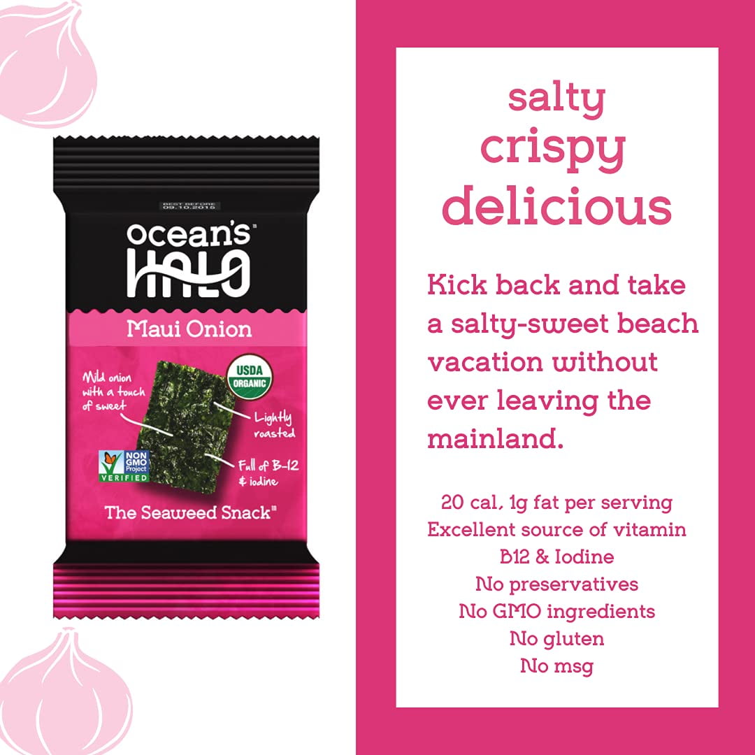 Ocean S Halo Organic Seaweed Snack 24 Unit Variety Pack Sea Salt 0 14oz 12 Unit And Maui Onion 0 14oz 12 Unit Walmart Com